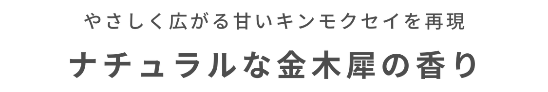 トップは爽やかなシトラスにフルーティーなグリーン調をプラスした穏やかなキンモクセイ。ミドルは柔らかなキンモクセイのフローラルな香り。ラストはムスクに軽くウッディを加えたフローラルウッディムスク。