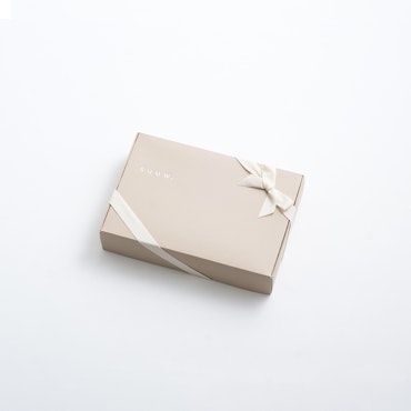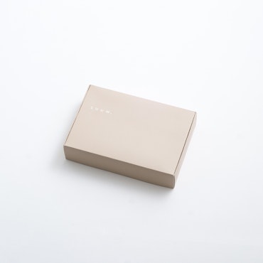 オリジナル紙箱に、チョコレートカラー×ゴールドロゴの紙帯とコットンリボンをかけてお送りします。紙帯は高級感のあるラフな質感です。ショッパーが必要な方は別途ご購入ください。